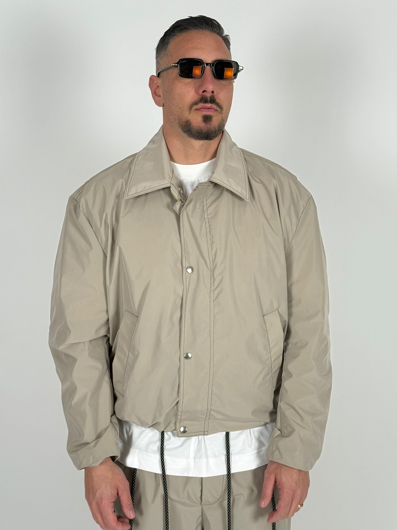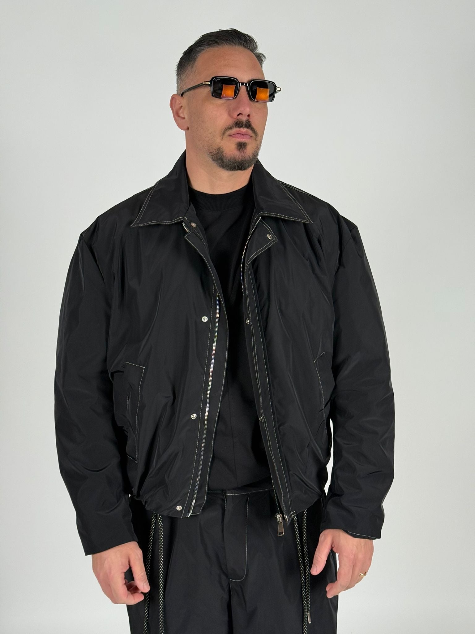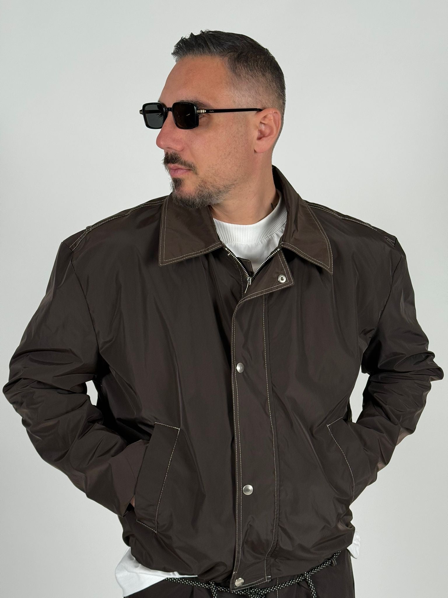 Giubbino In Nylon Con Cuciture A Contrasto